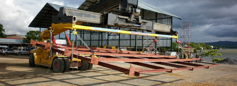 Up to 4,000m2 seashore yard for steel fabrication, marine repairs, conversions and barges construction, equipped with high quality and heavy duty equipment. Besides our central workshop with up to 1,000m2 equipted with a wide range of heavy duty machinery and systems for our mechanical, hydraulics, electrical & steel services.